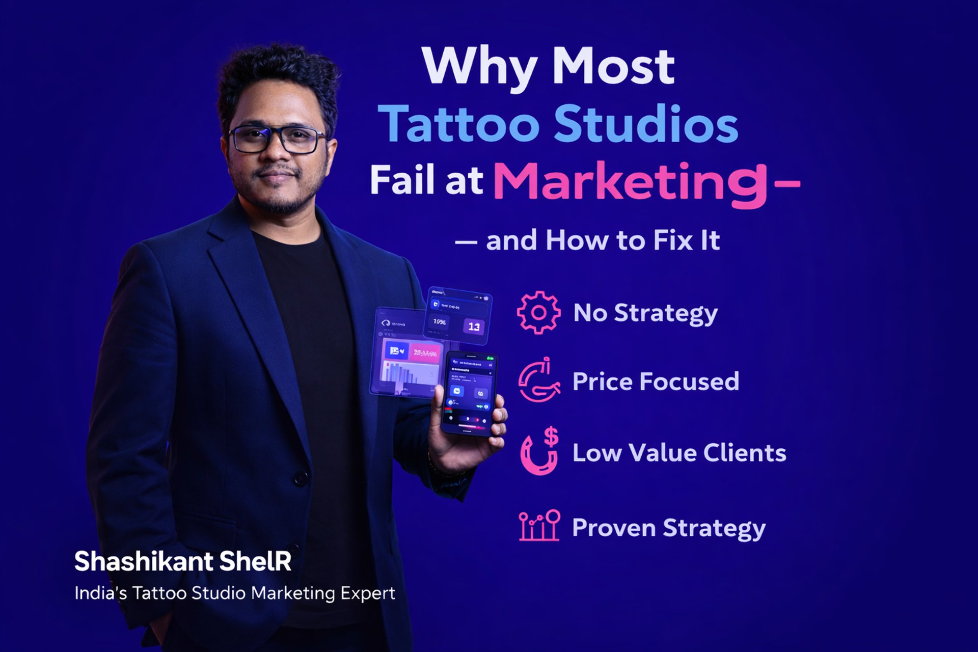 I am Shashikant ShelR, and after working with multiple tattoo studios across India, helping them build premium brands and generate consistent leads, I’ve seen why most tattoo studios fail at marketing — and more importantly — how to fix it.